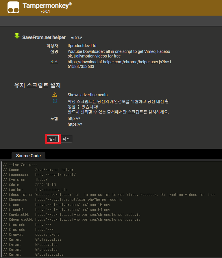 4. 아래 링크를 통해 접속한 후 유저 스크립트를 설치하면 완료된다.