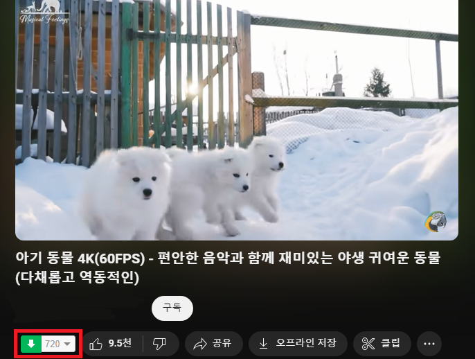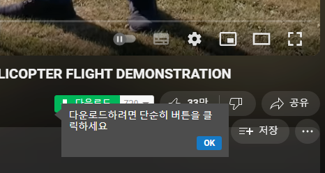 5. 설치가 잘됐다면 아래와 같이 다운로드 버튼이 영상 아래 좋아요와 싫어요 버튼 옆에 생기게 된다.