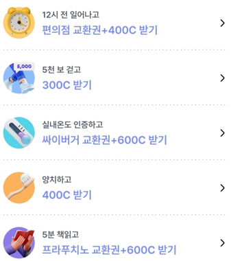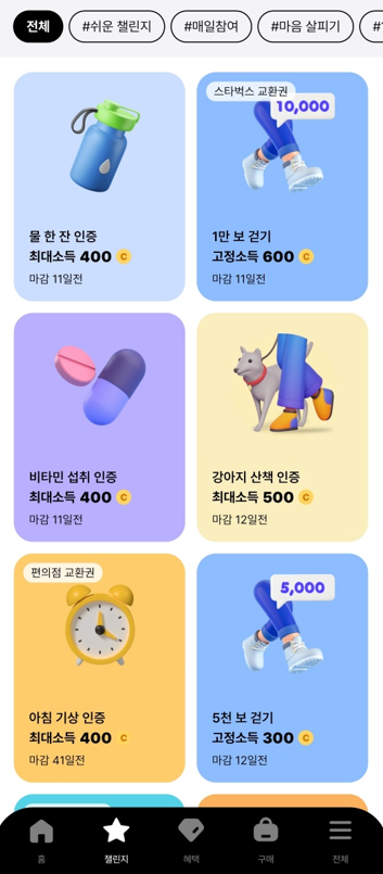 걸음수 아래에 보면 일상챌린지 목록들을 볼 수있는데
