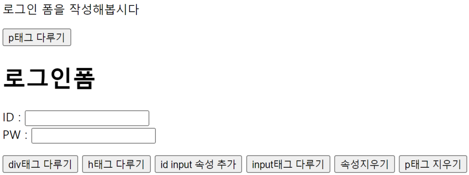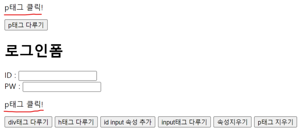 // 1.'p태그 다루기'라는 버튼 클릭 시,