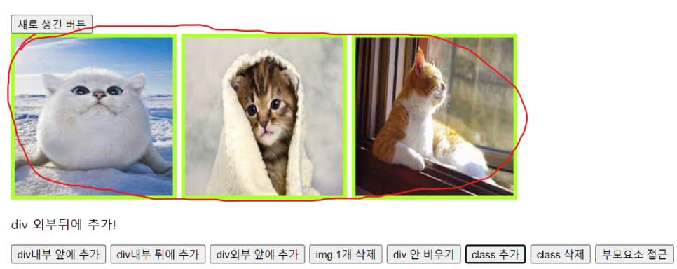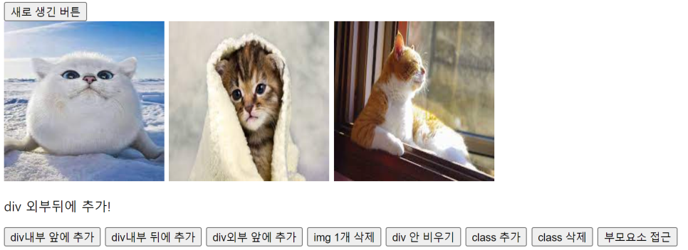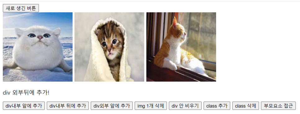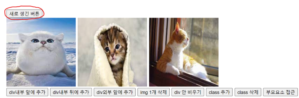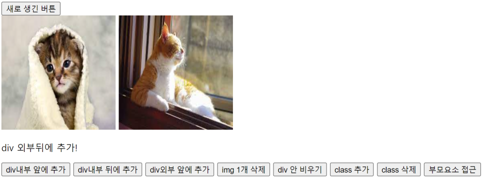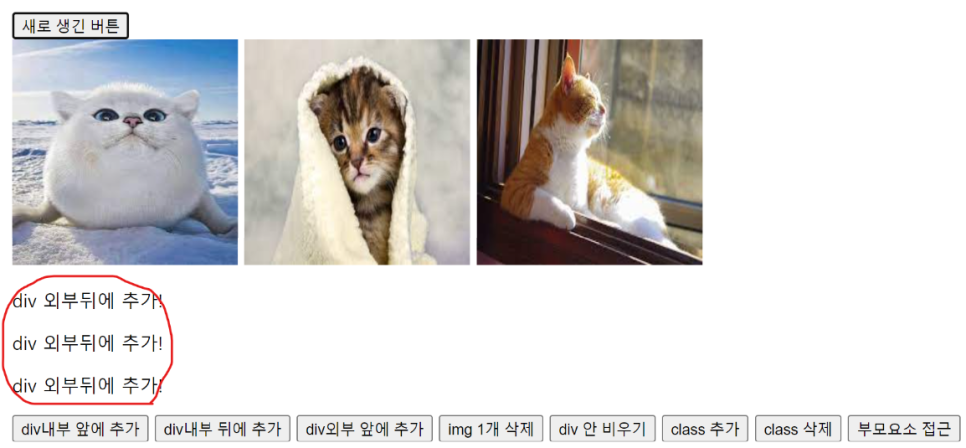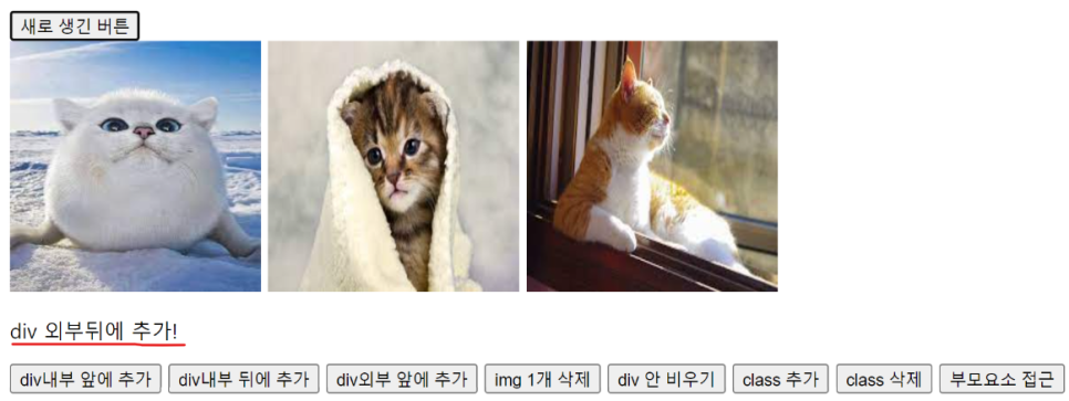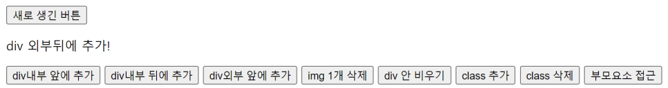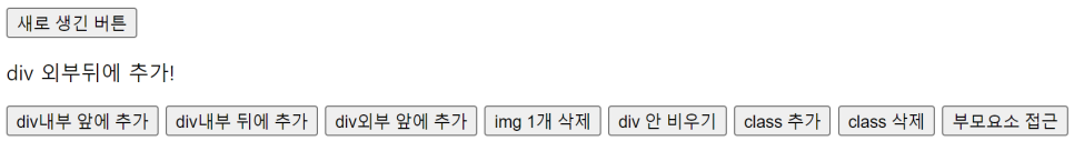 $('div').before('<button id="newbtn">새로 생긴 버튼</button>')
