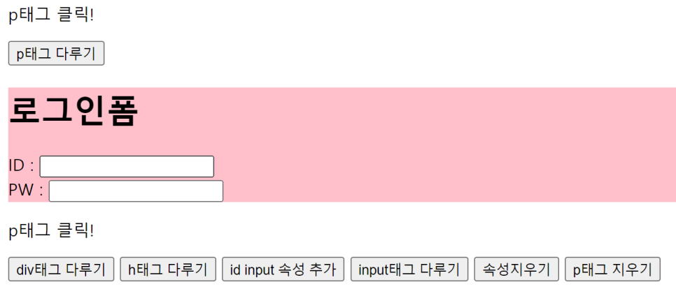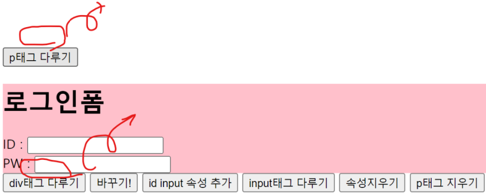 // 1.'p태그 다루기'라는 버튼 클릭 시,