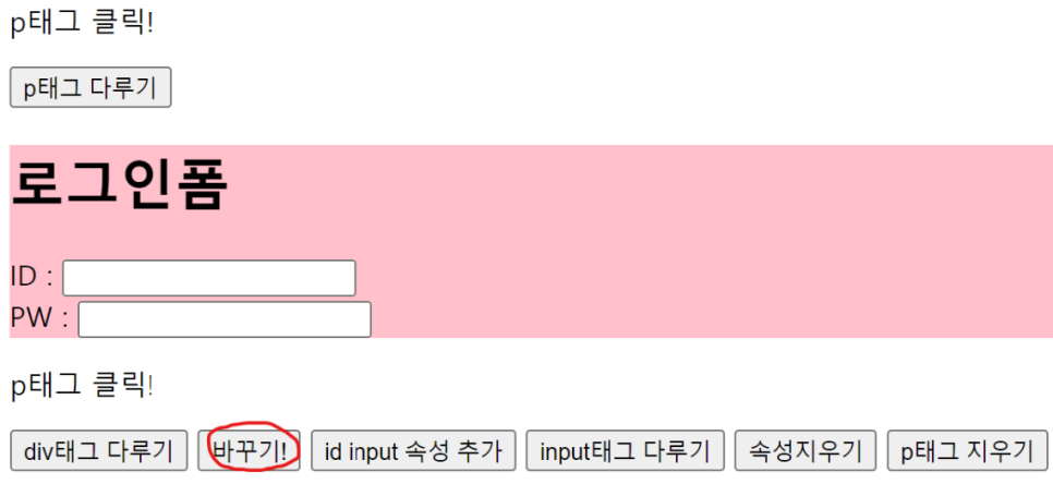 // 버튼 안의 글자 '바꾸기!'로 변경
