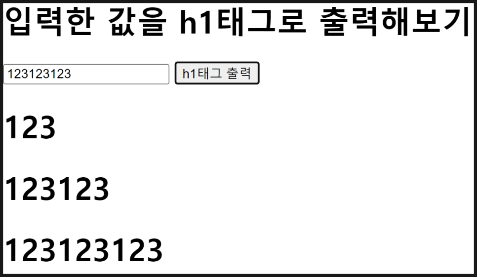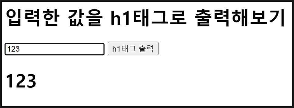 - 입력후 h1태그 출력 눌렀을때 HTML화면