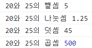 2. console 창에 덧셈, 뺄셈, 곱셈, 나눗셈에 대한 결과 출력.