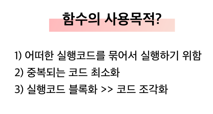 1. 반복되는 실행코드를 묶어서 실행 (재사용성)