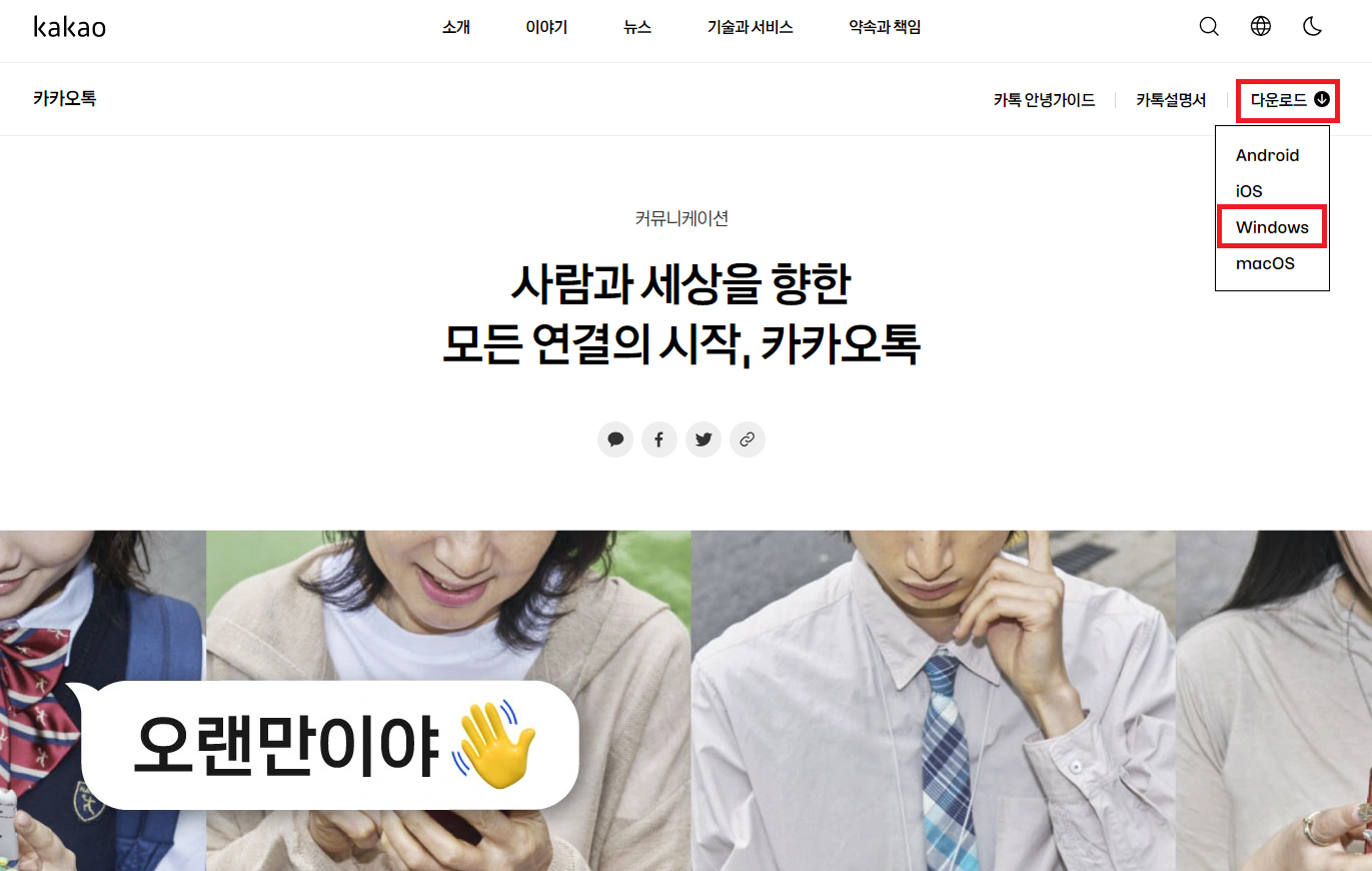 카카오톡, 카카오 페이지 PC버전 다운로드(링크, 사진 첨부)