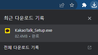 2) 아래 처럼 다운로드가 다됐다면 설치파일을 실행한다.