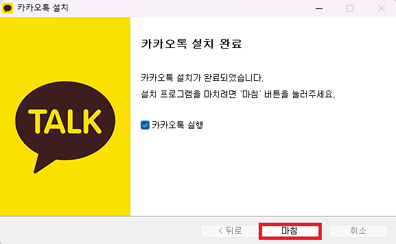 마침을 누르면 PC 카카오톡이 실행된다.