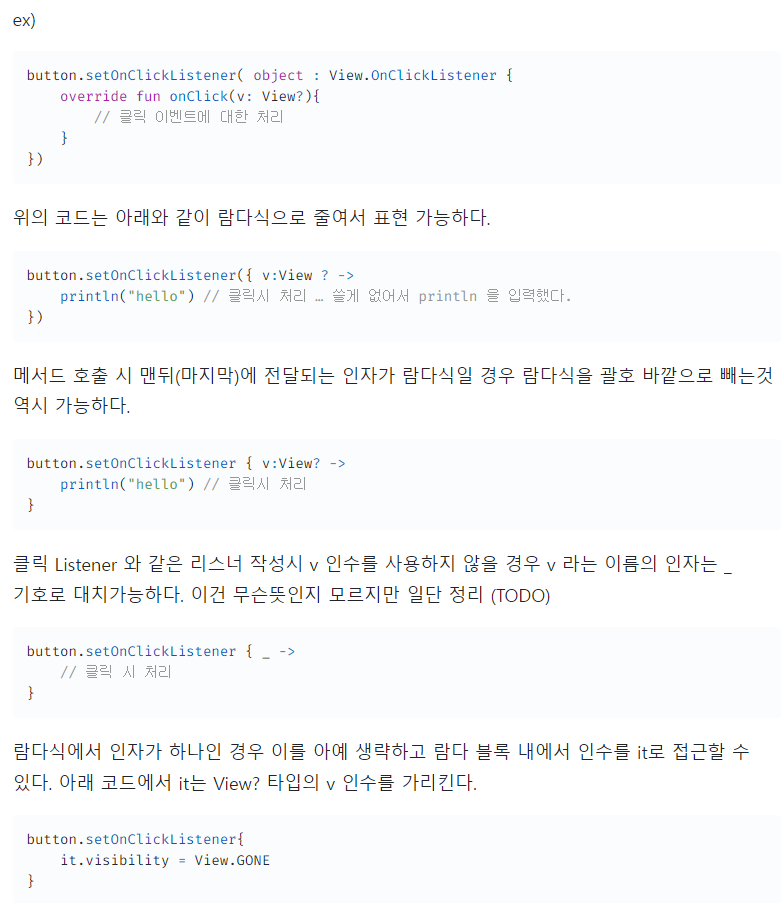 - (끝부분에 람다식 매개변수가 여러개여도 마지막 식만 분리 가능!)