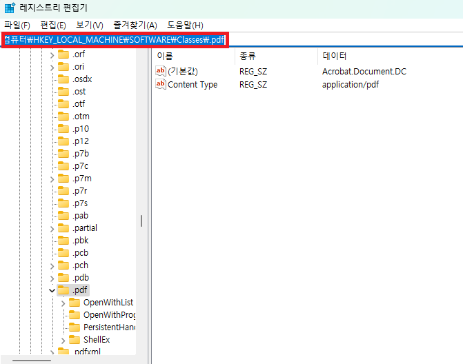 컴퓨터\HKEY_LOCAL_MACHINE\SOFTWARE\Classes\.pdf