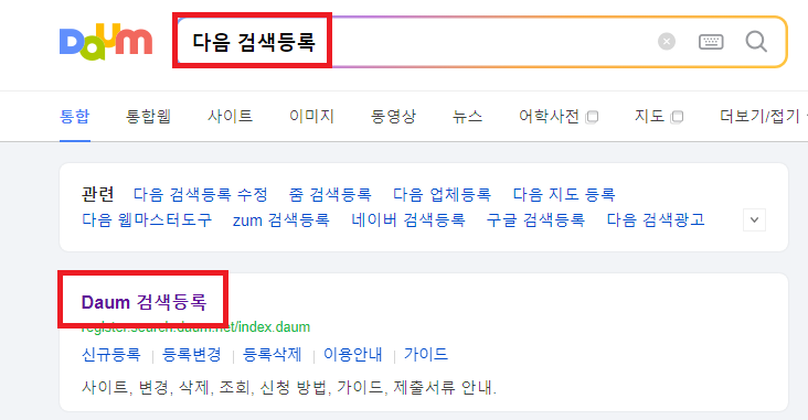 Daum 검색등록 사이트 검색을 무료로 등록할 수 있는 서비스입니다. 언제든 정보보완 수정이 가능하며, 등록 후에는 Daum 검색결과에 노출되어 수많은 네티즌들이 방문하게 됩니다. 신규등록하기