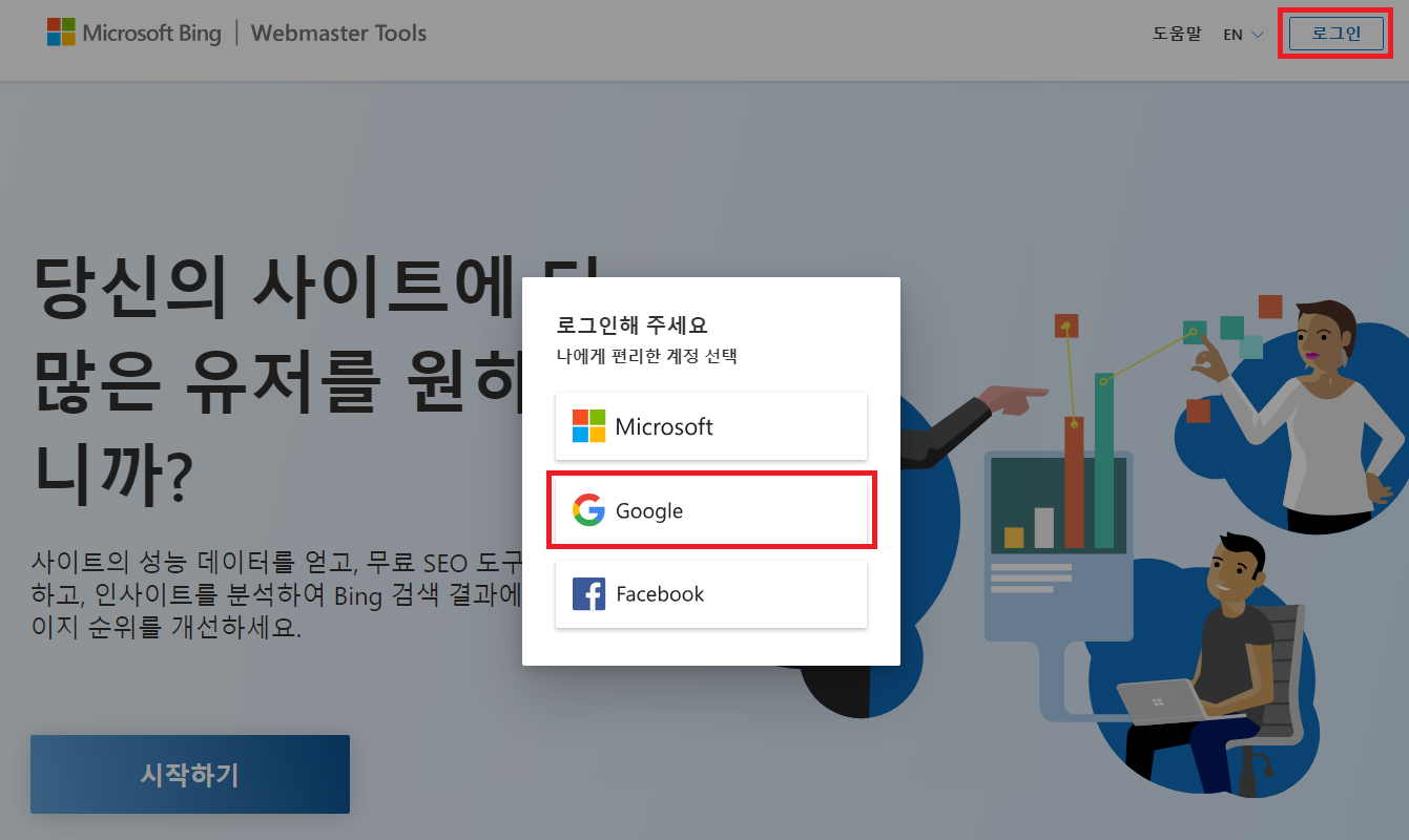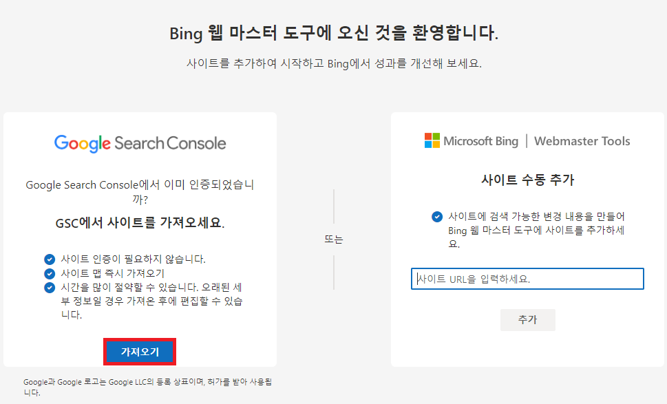 1. 아래 링크의 Bing 웹 마스터 도구 사이트로 접속한다.