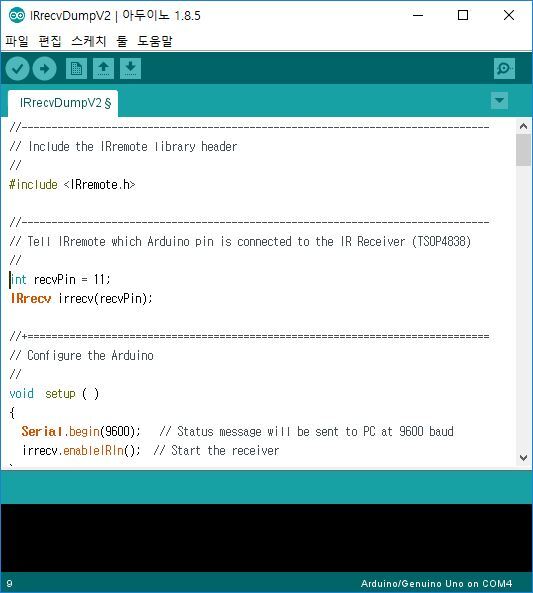 IRremote의 예제 중 IRErecvDumpV2를 선택해준다.