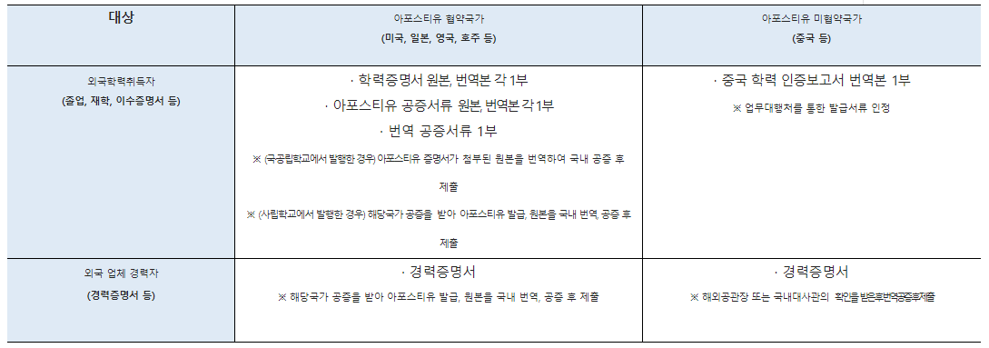 ※ 졸업증명서 및 경력증명서 제출 필요하다.