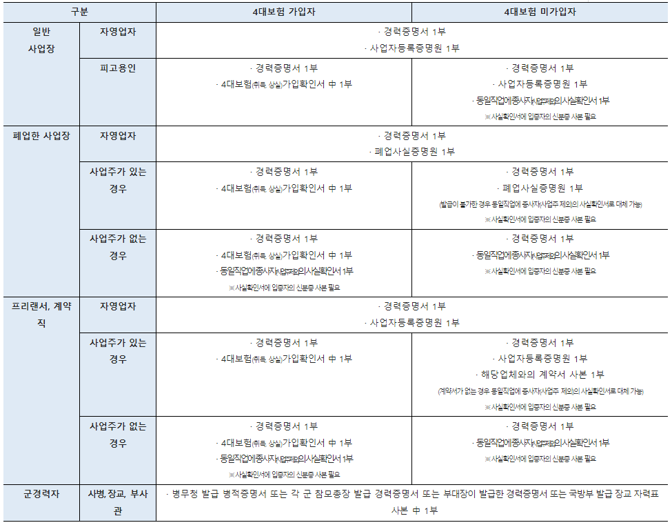 - 근로기준법 제39조에 따른 사용증명서(재직기간, 소속, 직위, 및 담당업무가 구체적으로 기재된 경력증명서)를 발급받아 제출