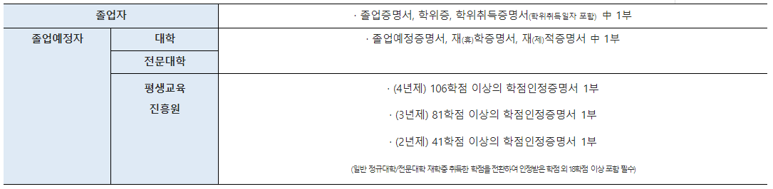 ※ 졸업증명서 및 경력증명서 제출 필요하다.