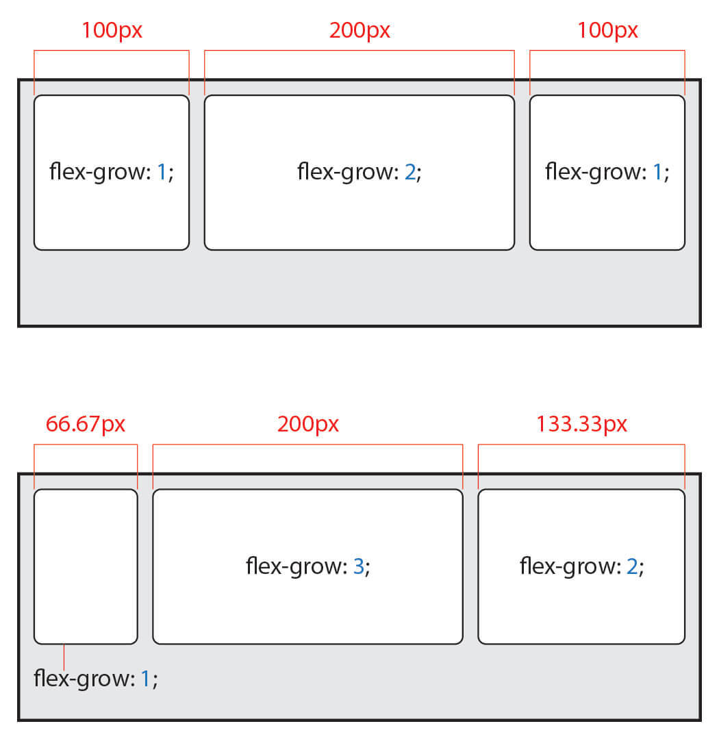 모든 Items의 총 증가 너비(flex-grow)에서 각 Item의 증가 너비의 비율 만큼 너비를 가질 수 있습니다.