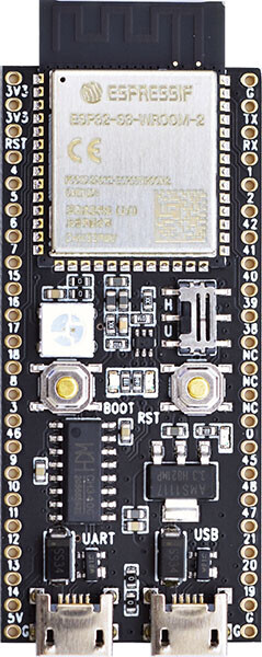 빨간색 화살표 USB 포트를 사용하여 PC와 연결하면 UART0를 이용하여 버튼 조작없이 자동으로 업로드 된다.