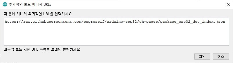 추가적인 보드 매니저 URLs 우측에 있는 버튼을 클릭 한다.