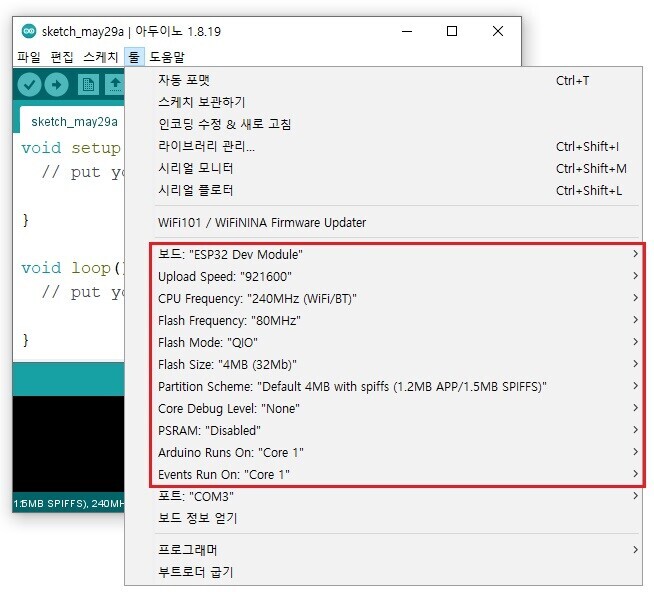 ESP32를 사용하기 위해서는 사용환경 설정을 해주어야 한다.