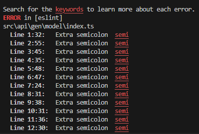 `Extra semicolon semi` 이 에러는 기존의 프로젝트 파일을 깃에서 Pull 을 받아서 실행할때 나오는 에러로 Eslint나 prettier가 세미콜론을 인식하여 발생하는 에러이다. 해결하려면 semicolon을 인식 못하게 하거나 제거해야 한다.!