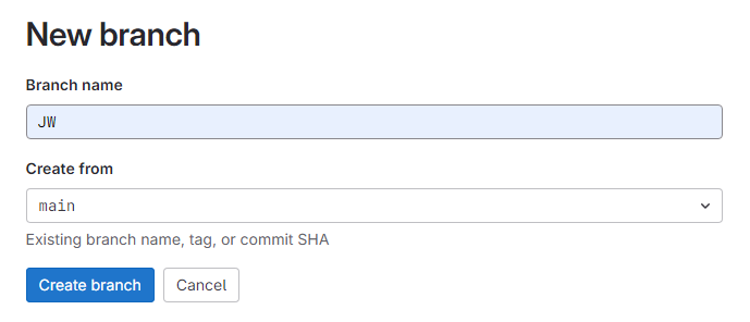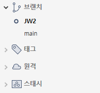 깃랩에 들어가서 확인해보면 소스트리에서 생성한 JW2 브랜치가 생성된 것을 확인 할 수 있다.