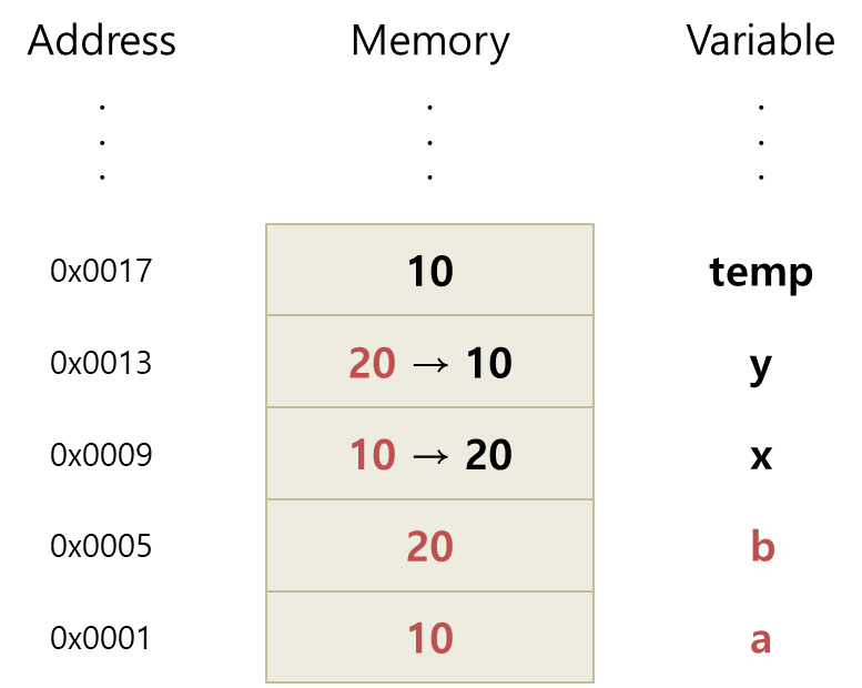 swap() 호출 전 : a = 10, b = 20