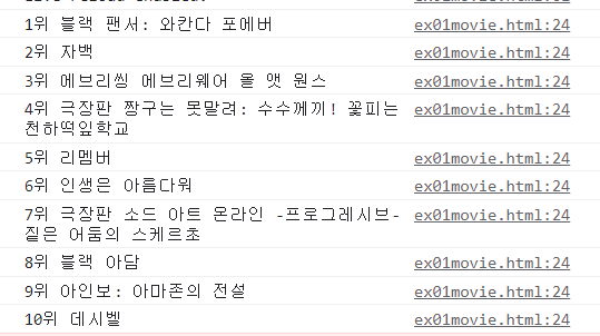 console.log(res.boxOfficeResult.weeklyBoxOfficeList[i].rank+"위 "+res.boxOfficeResult.weeklyBoxOfficeList[i].movieNm)