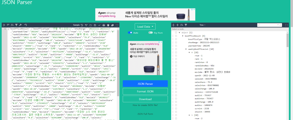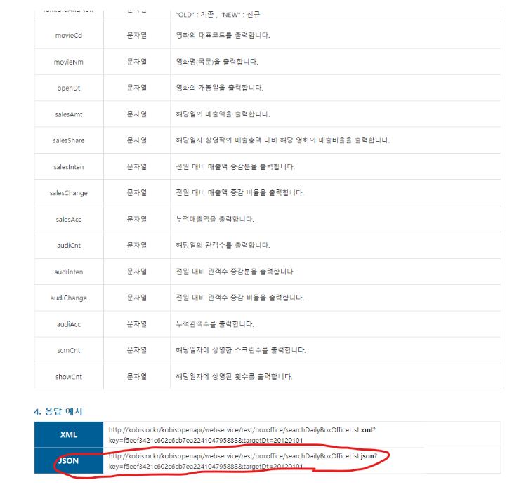 url:"https://kobis.or.kr/kobisopenapi/webservice/rest/boxoffice/searchWeeklyBoxOfficeList.json?key=709950ed56fb6243b4b795fb49640262&targetDt=20211128", # 영화진흥회 오픈API: Json URL