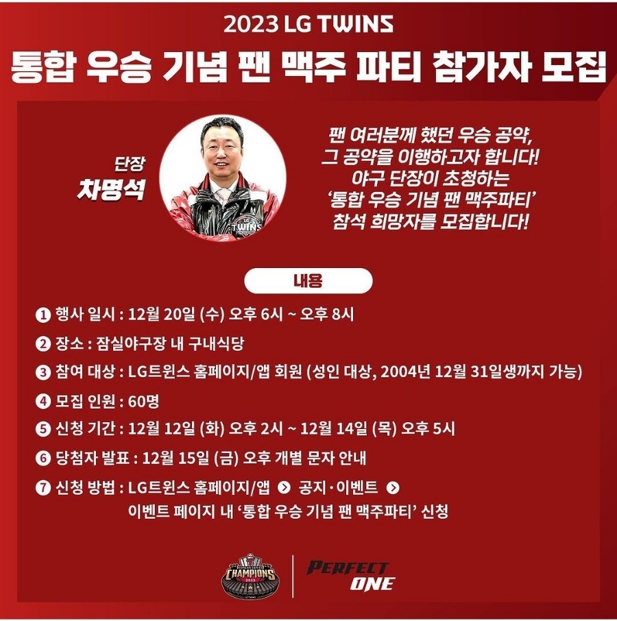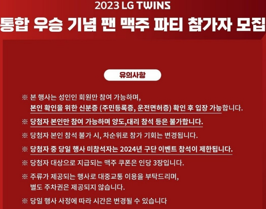 LG트윈스 팬 맥주파티 정보 및 신청(12월 20일 수요일 6시)