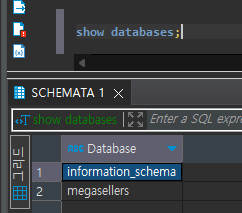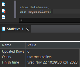 1) show databases; 라고 입력창에 입력한 후 실행하고