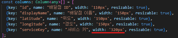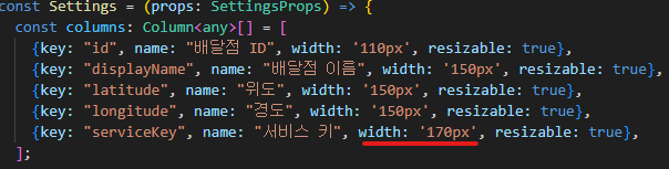 2-1. 해당 컴포넌트의 컬럼의 길이를 수동 설정하여 Datagrid의 넓이 보다 작게 맞춰줌