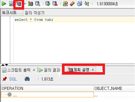 Sql 질의를 실행한 후 나의 질의문을 Oracle이 어떻게 실행하였는지를 보여줌.