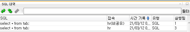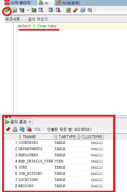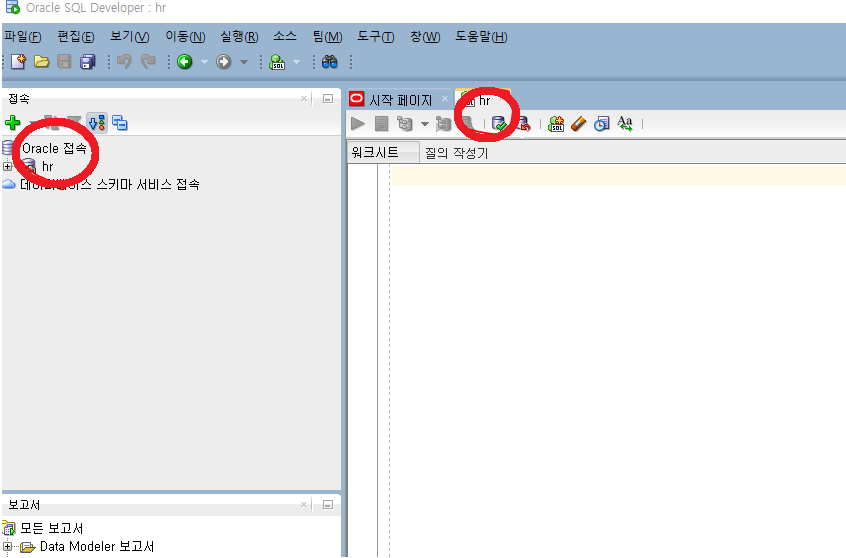 - 위에서 잠금해제한 hr 계정으로 접속연결.
