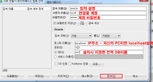 password : **** (오라클 설치시 설정한 비밀번호)