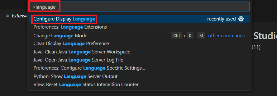 2. [Ctrl + Shift + P]키를 누르고 "language"를 입력하고