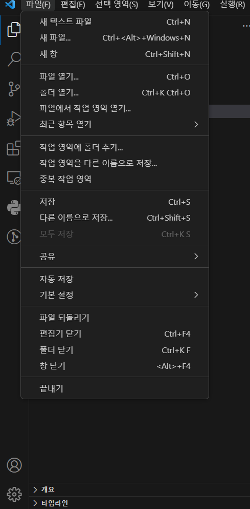 VScode를 처음 깔면 메뉴가 영어로 되어있다.