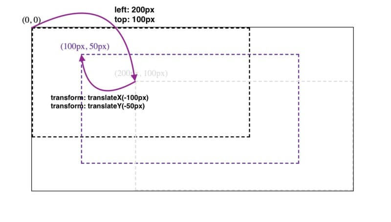 transform 속성을 설정해주는 이유는 left 속성은 div 영역의 좌표(0,0) 기준으로 설정되기 때문입니다. transform 속성을 이용하면 위 그림과 같이 div.inner의 영역을 이동시킬 수 있습니다.