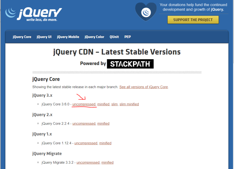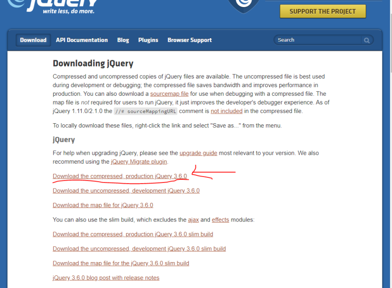 jquery-3.6.0.min 파일을 다운로드 한뒤, 자신의 프로젝트 dir에 이동시킨다.