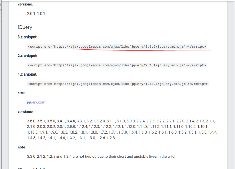 인기 있는 오픈소스 자바스크립트 라이브러리에 대해 Google에서 호스팅하는 콘텐츠 배포 네트워크에 포함된 라이브러리 목록을 가져옵니다.